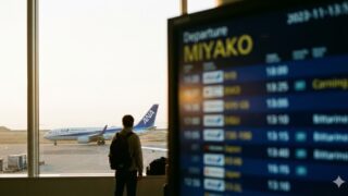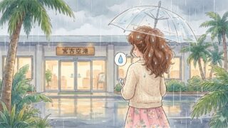 雨の宮古島に降り立つ 関空から約2時間半。機内のモニターが着陸を告げ、窓の外に目をやると、そこには期待していた『宮古ブルー』ではなく、しっとりと濡れた滑走路が広がっていました。 到着した宮古島は、あいにくの雨。 でも、ヤシの木が揺れる空港の...