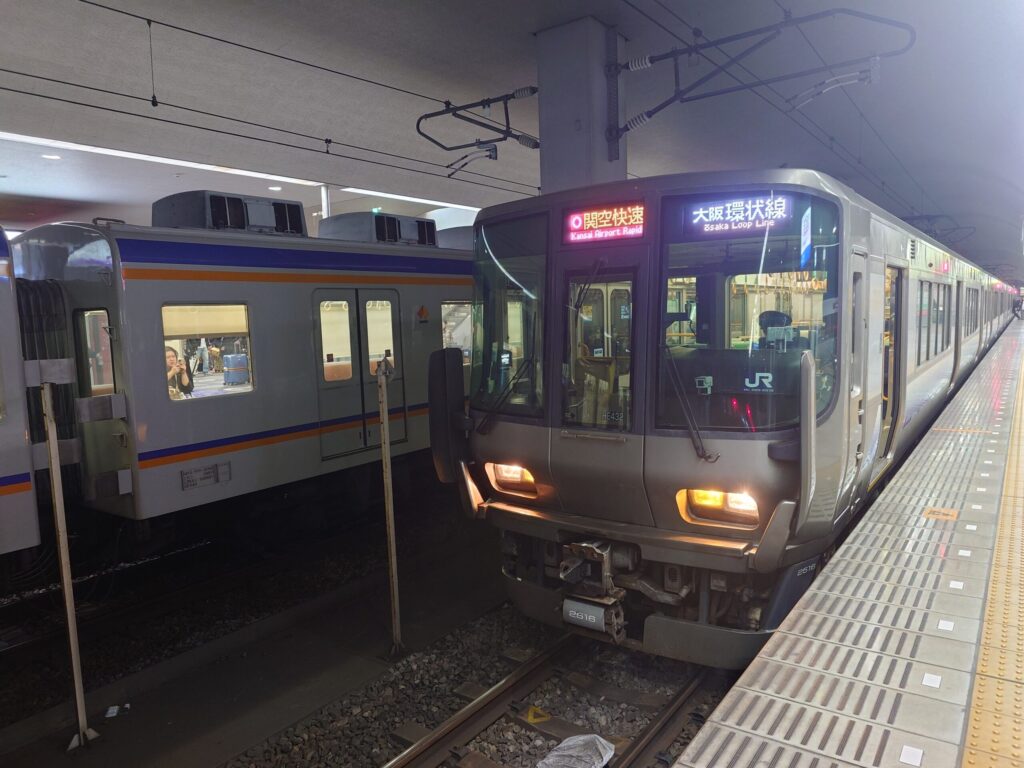 関空に無事着陸し、この日の旅の締めくくりは、いつもとは少し違うルートを選んだ。普段は南海ユーザーの私だが、この日は妻と梅田で待ち合わせをしていたため、JRの関空快速へと乗り込む。