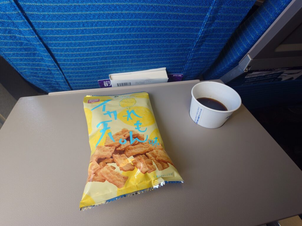 予定が崩壊しなかった安堵感からか、急激な空腹に襲われました。ゲート前のANA FESTAで、慌てて購入したおつまみを広げます。もちろん、レジでの「ANAカード提示」は忘れません。たとえ数百円の買い物でも、割引(5%OFF)とマイル積算を逃さないのがマイラーの習性(さが)です。