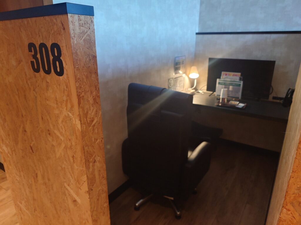- 個室ブースは早朝の仮眠&デバイスの充電に最適