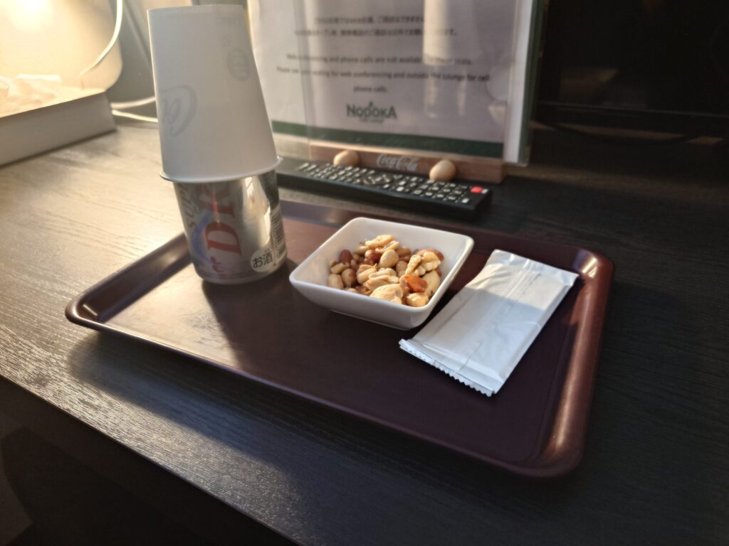 ちなみに、NODOKAはアルコールメニューが破格です。アサヒスーパードライやキリンラガーがなんと240円!空港価格とは思えない、お酒好きの修行僧にはたまらない価格設定ですね。