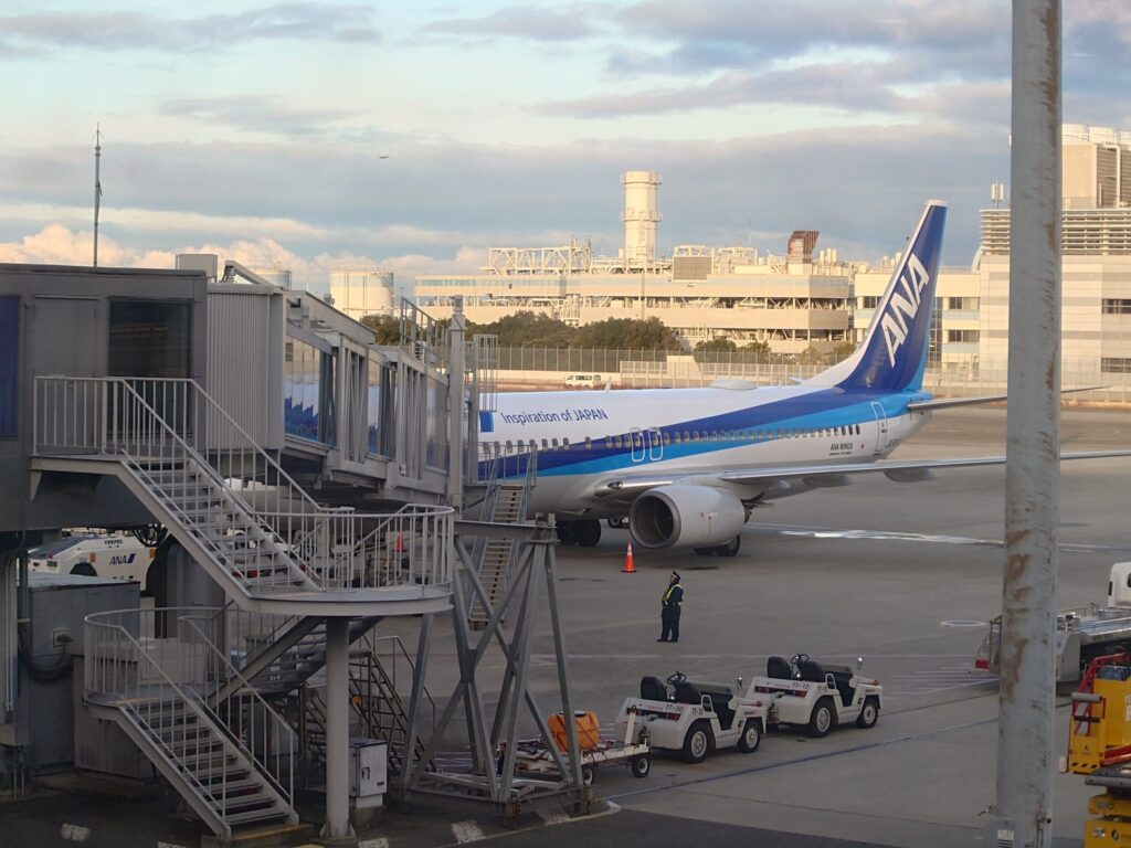 時刻は朝7時35分。関西国際空港、38番ゲート。こちらのゲート、国内線の一番奥にあるゲートになります。ANAは基本26番や27番あたりを使用する事が多く今回のゲートは関空リニューアル後は初めての使用です。