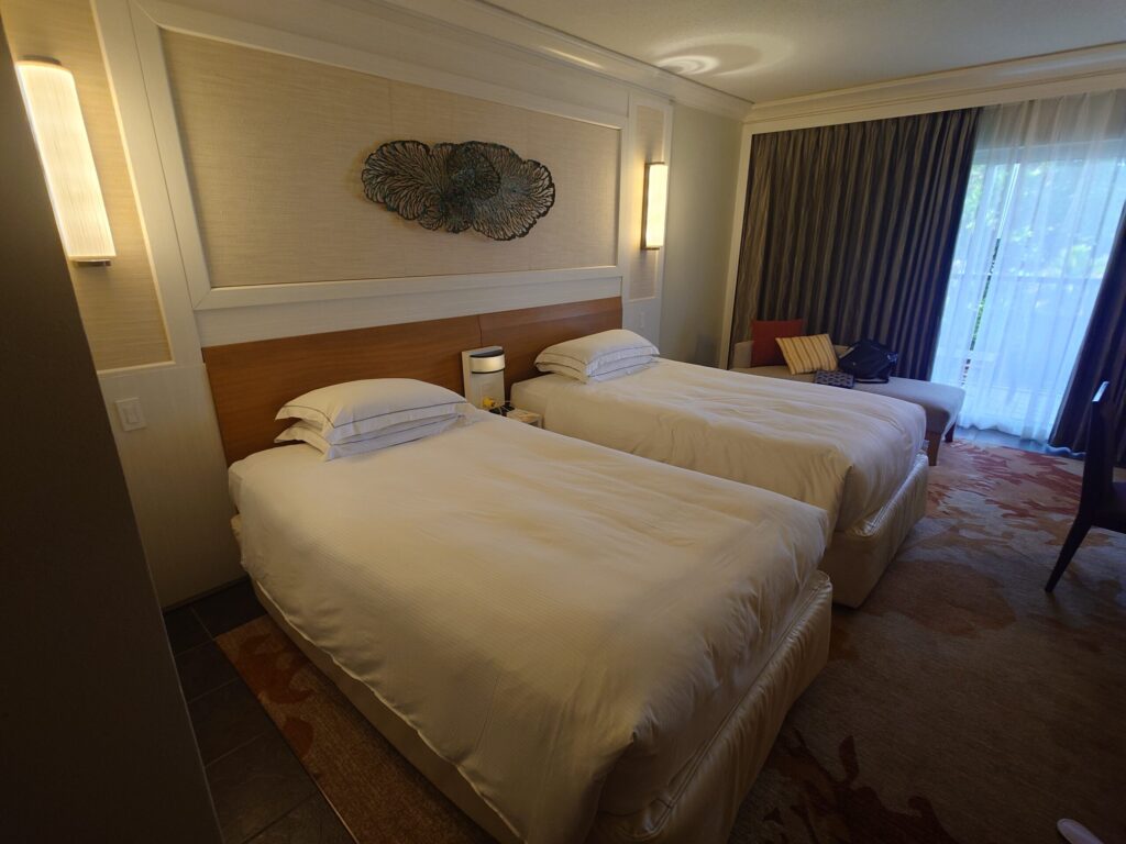 お部屋はツインの別途とソファーがある落ち着いたモダンな雰囲気のお部屋でした。2017年にリニューアルしたそうですが、それから9年近く経っていることを考えるとさすがヒルトン。清潔感もある落ちつけるお部屋でした。