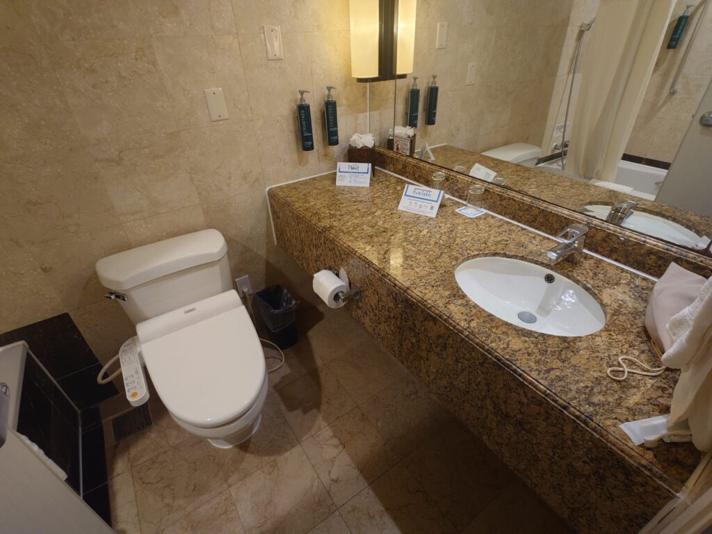 トイレとバスルームは特に別々というわけではありませんでした。アメニティーはさすがヒルトン。しっかりそろってます。