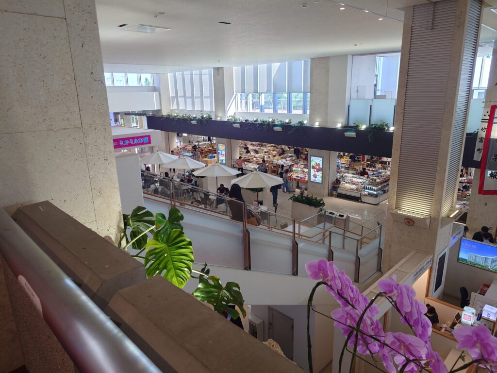 中に入ると、制限エリア外にはお土産屋さんが左右に2か所。そして奥には食事処が2か所と非常にコンパクトにまとめられております。入って右手がJALで左がANAと伊丹空港ごぎゅっと小さくしたような感じですかね。ただ、彩り豊かな造花があったり、パラソルがあったりとなんともまぁ、南国の空港らしい雰囲気を感じます。