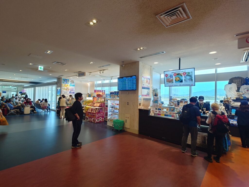 空港自体が非常にコンパクトがゆえに、便が集中するととてつもなく人でごった返します。特に羽田便等が重なると保安検査場はカオスの様相を呈します。こればっかりはキャパがキャパなので仕方ないといえば仕方ないですが。逆に便の間隔があいたり、羽田便が出た後は結構ガランとした雰囲気になったりもします。
