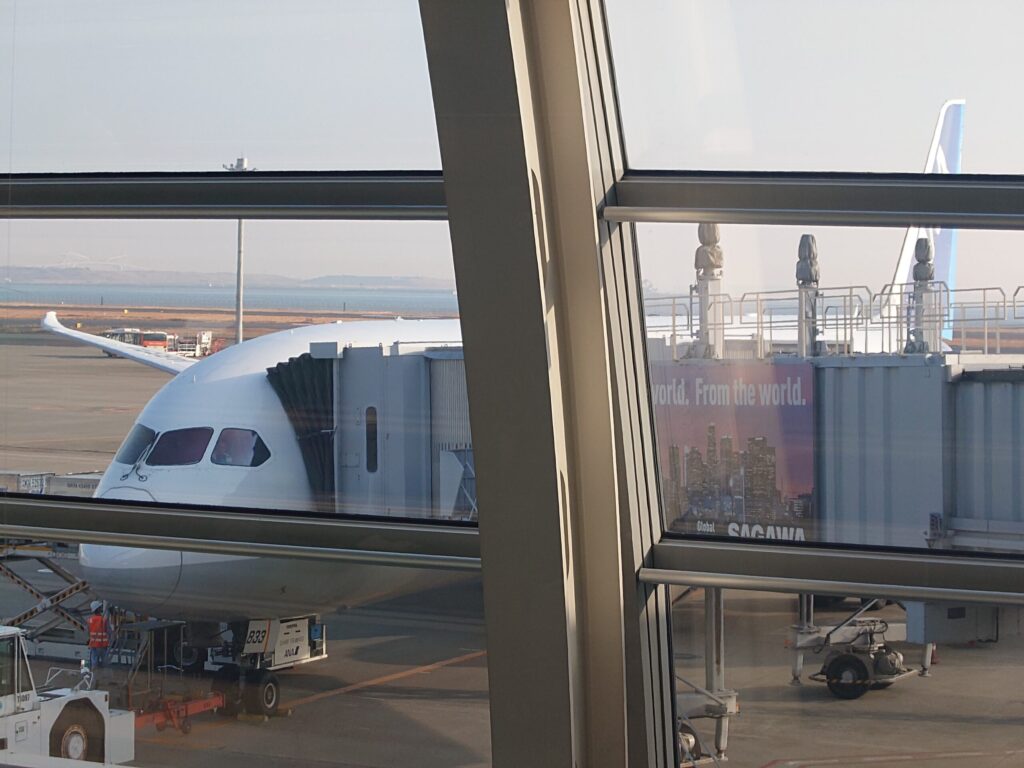修行の舞台は羽田空港。63番ゲートから搭乗するのは、ANAが誇る国内線最新仕様機、ボーイング787-9(通称:78G)です。