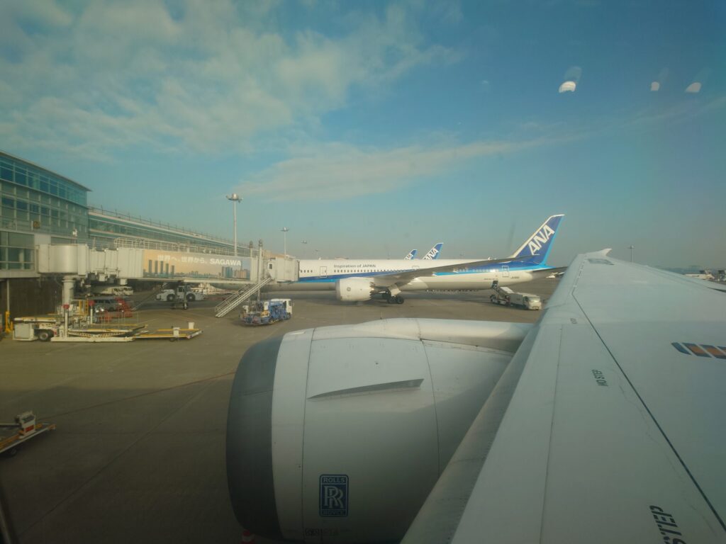 写真の手前、エンジンに刻まれた「ROLLS ROYCE」のロゴと鷲のマークにご注目。 先述の通り、2026年1月をもって国内線787-9は全機改修が完了しました。 そのため、このように外見は「RRエンジン搭載の789」であっても、機内に一歩入れば最新の「78G仕様(トヨタ紡織シート)」が広がっている。 まさに、過渡期を終えた現在のANAを象徴する一枚です。