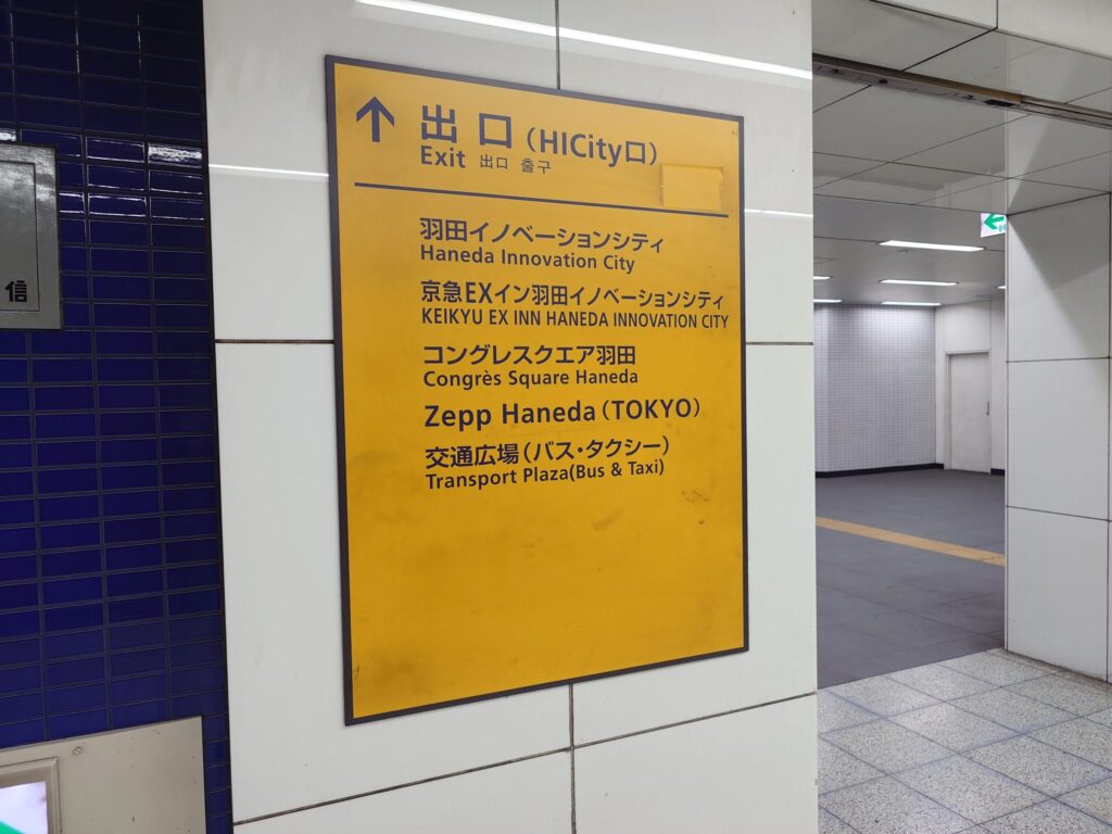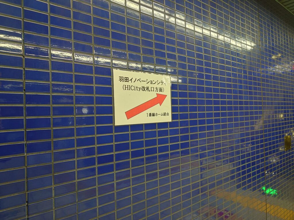 羽田空港から京急線でわずか一駅。天空橋駅に到着してまず驚くのが、その案内です。目指す「HICity口」改札へ向かうには、一度階段を上がり、反対側のホームを経由して進まなければなりません。