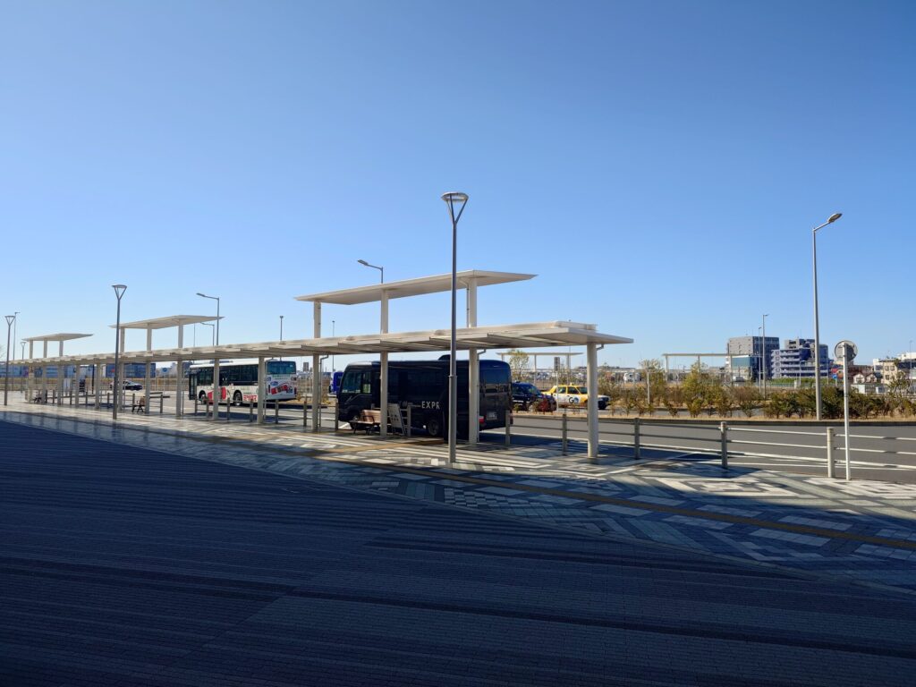羽田空港から電車でわずか数分。あちらが数万人規模の熱気に包まれている一方で、ここは驚くほど静まり返っています。整備されたばかりの美しい建物やバス停のシェルターが並んでいますが、歩いている人はおろか、車の気配すらほとんどありません。