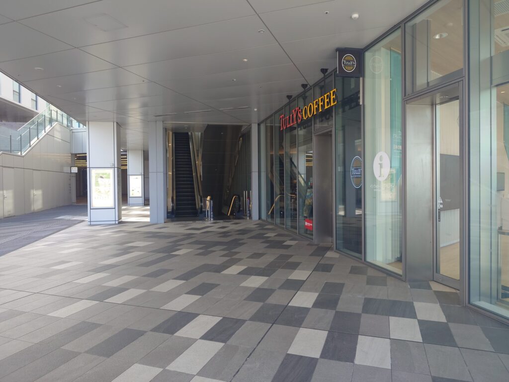 スタイリッシュなライティングの改札を抜けると、目の前には広大なロータリーが広がっています。しかし、地上へ上がってまず驚くのは、その圧倒的な「人の少なさ」です。