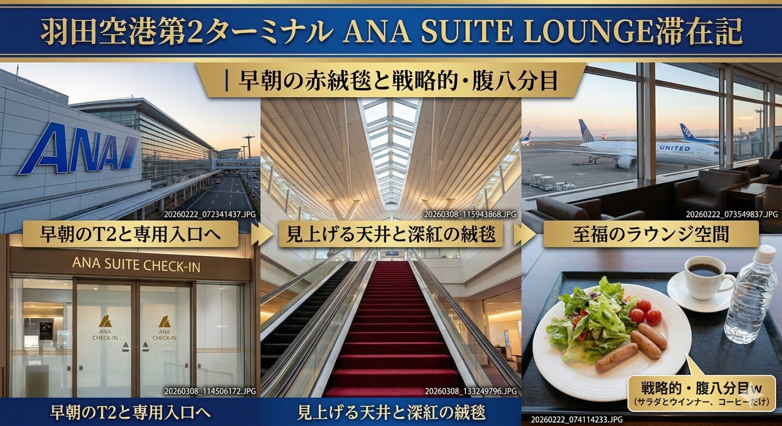 【ダイヤ維持修行2026】羽田空港第2ターミナル ANA SUITE LOUNGE滞在記|早朝の赤絨毯と戦略的・腹八分目