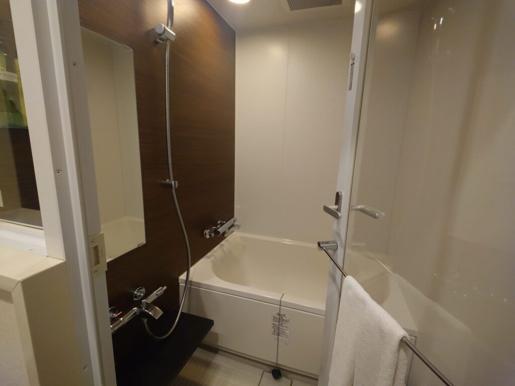 なんと、このお部屋は『お風呂とトイレが完全セパレート』なんです。 それだけではありません。驚いたことに、ビジネスホテルによくあるユニットバスではなく、しっかりと洗い場付きの浴室』が完備されていました。